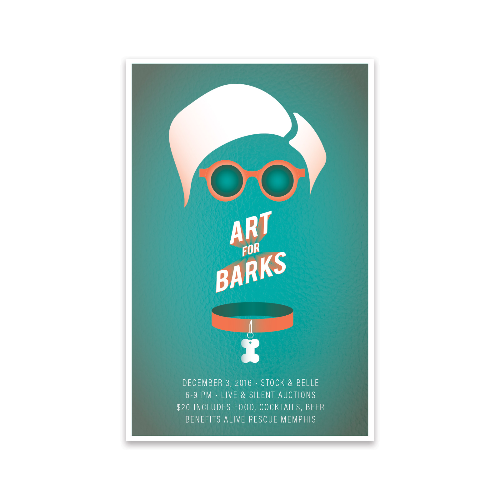 Art for Barks is an annual art auction benefitting dog rescue group Alive Rescue Memphis. The client wanted a strong, clever and eye-catching image that would appeal to art collectors.
