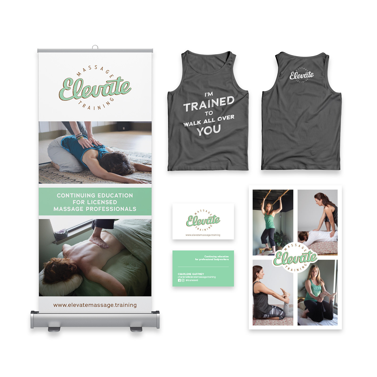 Elevate Massage Training provides continuing education for licensed massage professionals with a focus on Thai and ashiatsu massage. The client wanted a clean, modern brand that is photography heavy and educates the reader about what the massage modalities look like.